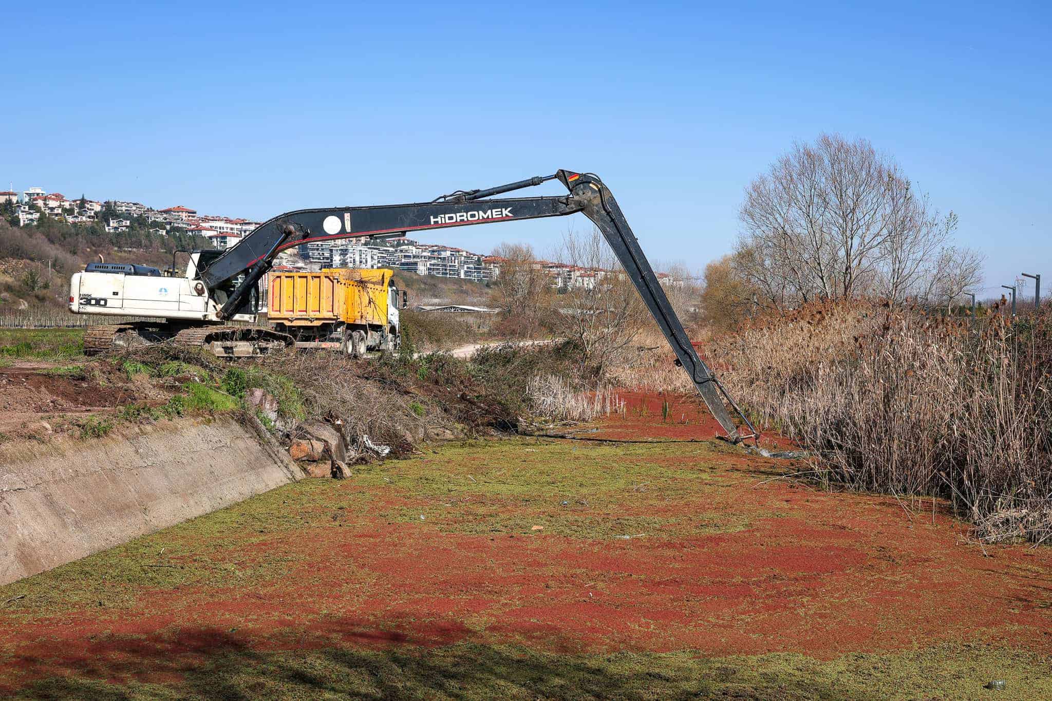Başlatılan çalışmalar, 5 kilometre uzunluğundaki hat boyunca sürdürülüyor. Ekipler, hem dere tabanında biriken zararlı bitki ve atıkları özenle temizliyor hem de su yüzeyinde oluşan polen tabakalarını ortadan kaldırıyor.