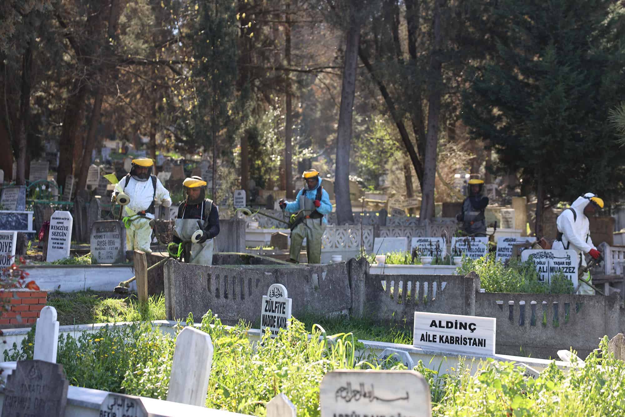 Büyükşehir Mezarlıklar Dairesi Başkanlığı’ndan yapılan açıklamada, “Bizler için değerli olan vefat eden vatandaşlarımızın defin alanları, uzayan otların biçimi ve onarım çalışmalarıyla tertemiz hale getiriliyor. Ramazan Bayramı’nda yapılacak olan ziyaretlerin bakımlı, temiz ve güvenli bir ortamda geçmesi için çalışmalarımız devam ediyor. Tüm vatandaşlarımıza hayırlı bayramlar dileriz” denildi.