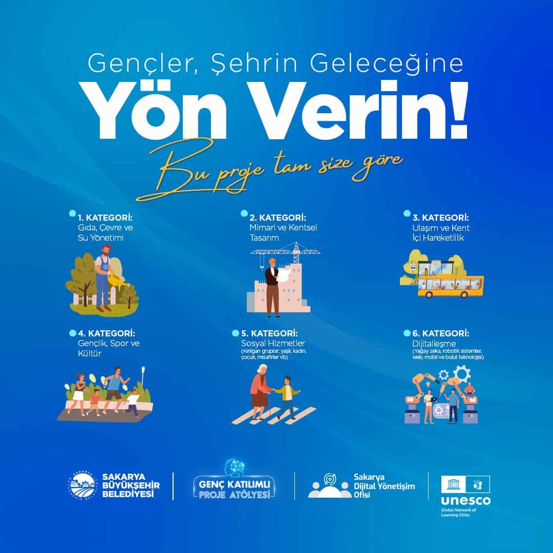 Gençler; gıda, çevre ve su yönetimi, mimari ve kentsel tasarım, ulaşım, gençlik, spor, kültür, sosyal hizmetler ve dijitalleşme gibi farklı alanlarda projeler geliştirdi. Bu projeler, Sakarya’nın sürdürülebilir ve akıllı şehir vizyonuna katkı sunmayı hedefliyor.