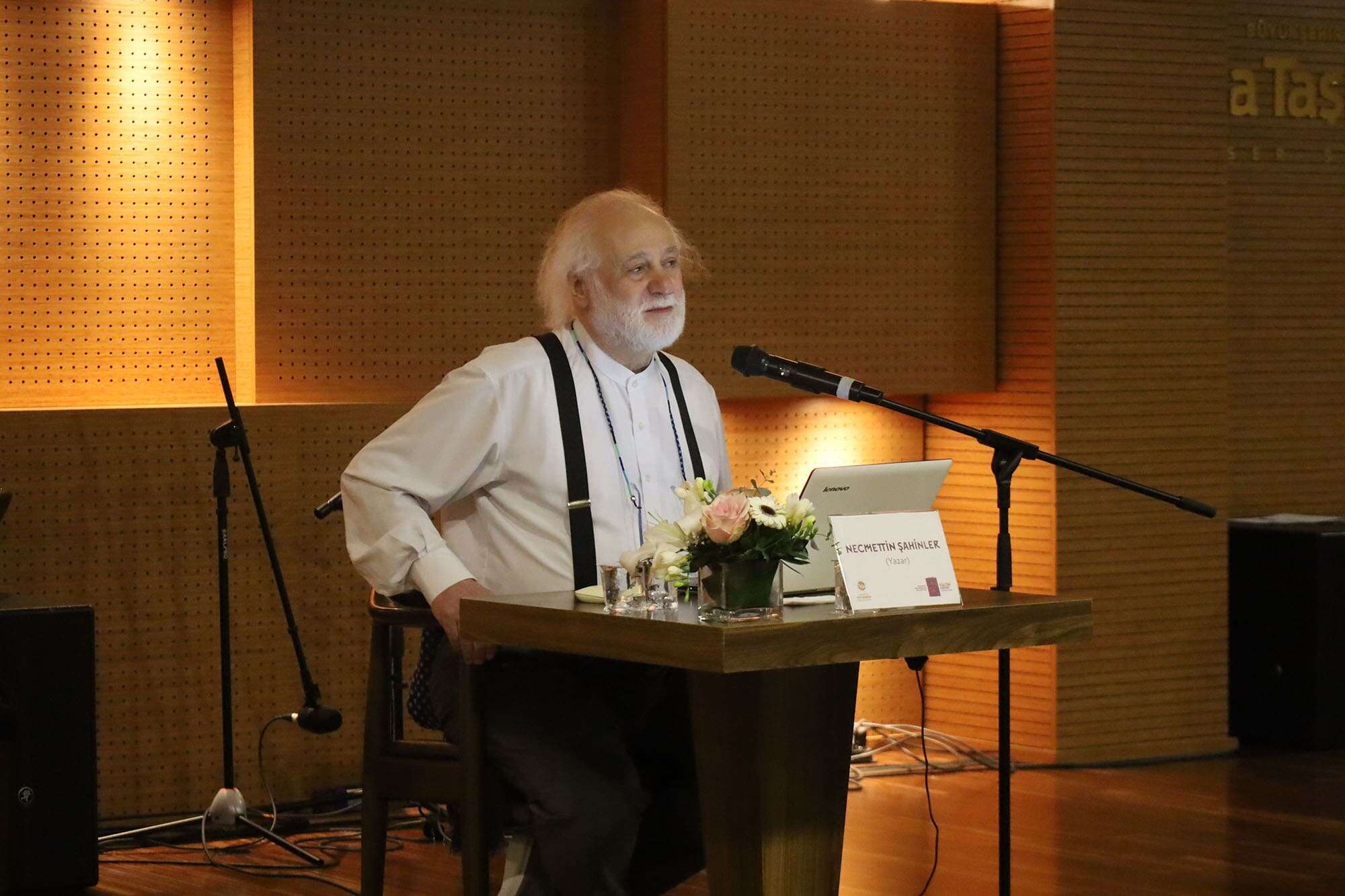 Söyleşide konuşmacı olarak yer alan Yazar Necmettin Şahinler, “Ben peygamber mesleği yapıyorum, kumaş işiyle uğraşıyorum” diyerek mesleğinden bahsetti. Şahinler, tarihte askeri olarak güçlü ve komutanlık özelliği bulunan iki peygamberden birinin Davut Peygamber, diğerinin ise Hz. Süleyman olduğunu belirtti.