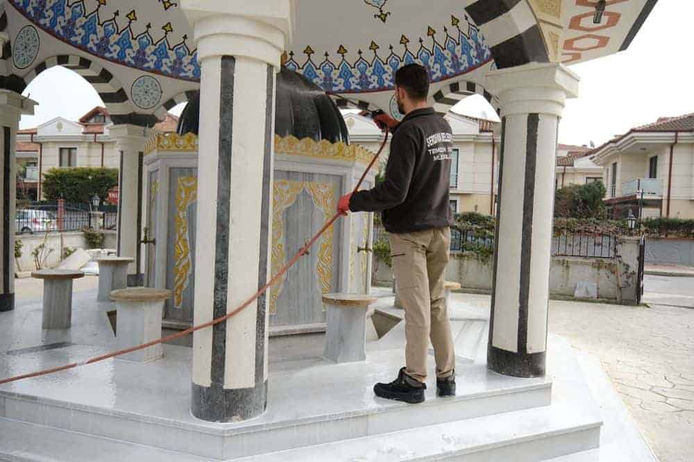 Çalışmalar kapsamında camilerin iç mekânlarında halılar özenle süpürülüp yıkanıyor. Ayrıca, cami çevreleri, avlular ve şadırvanlar dezenfekte ediliyor. Ortak kullanım alanlarında da detaylı temizlik işlemleri uygulanarak, ilçe genelinde hijyen standartları yükseltiliyor.