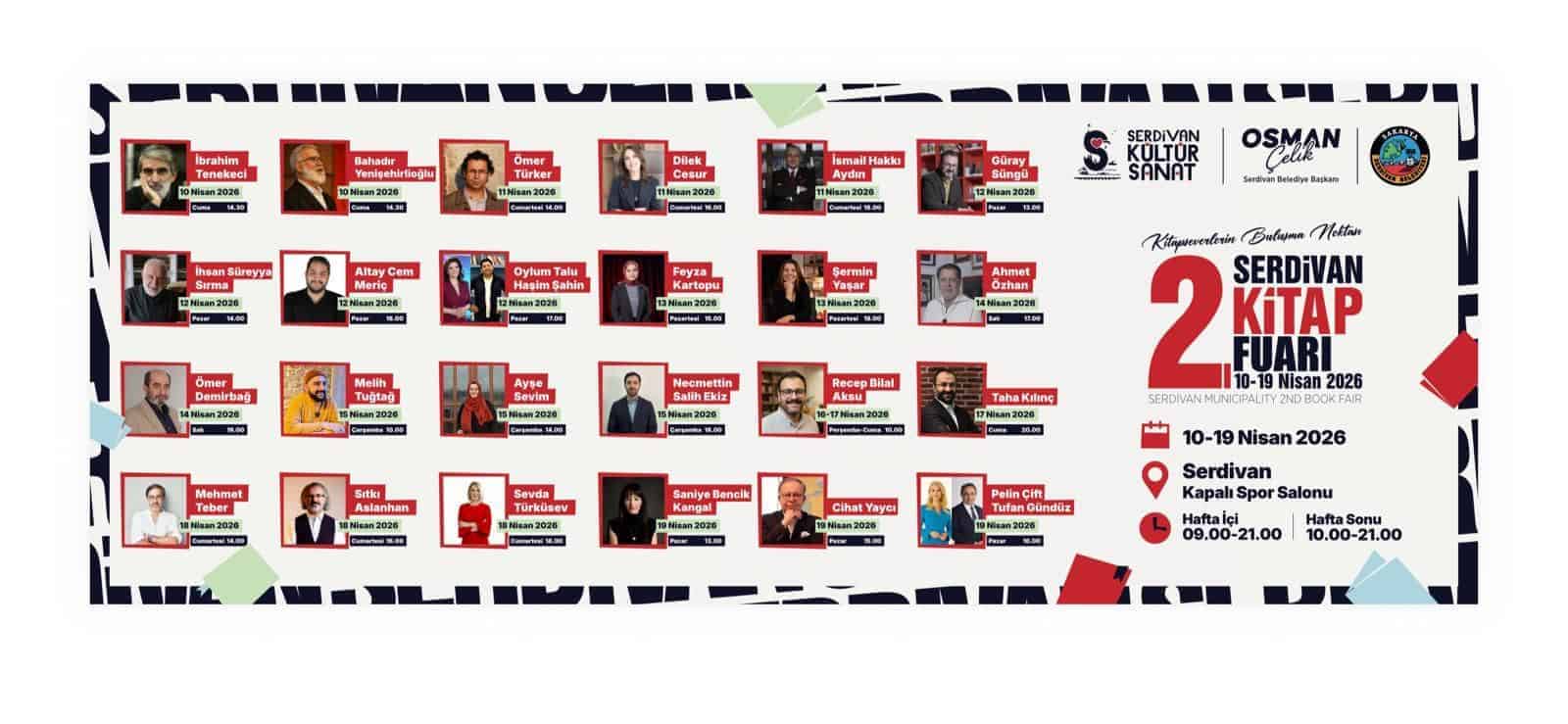 Serdivan Belediyesi tarafından organize edilen 2. Kitap Fuarı, 10 Nisan Cuma günü Serdivan Metehan Başar Kapalı Spor Salonunda kapılarını ziyaretçilere açtı. 10 gün boyunca devam edecek bu etkinlik, her yaştan kitapseveri kültür ve edebiyatla buluşturmayı hedefliyor. Fuarın hazırlıkları tamamlanırken, ilçede adeta kültür ve edebiyat şöleni yaşanıyor.